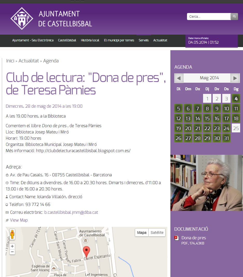 A la Biblioteca de Castellbisbal, lectura de la novel·la de Teresa Pàmies "Dona de pres".